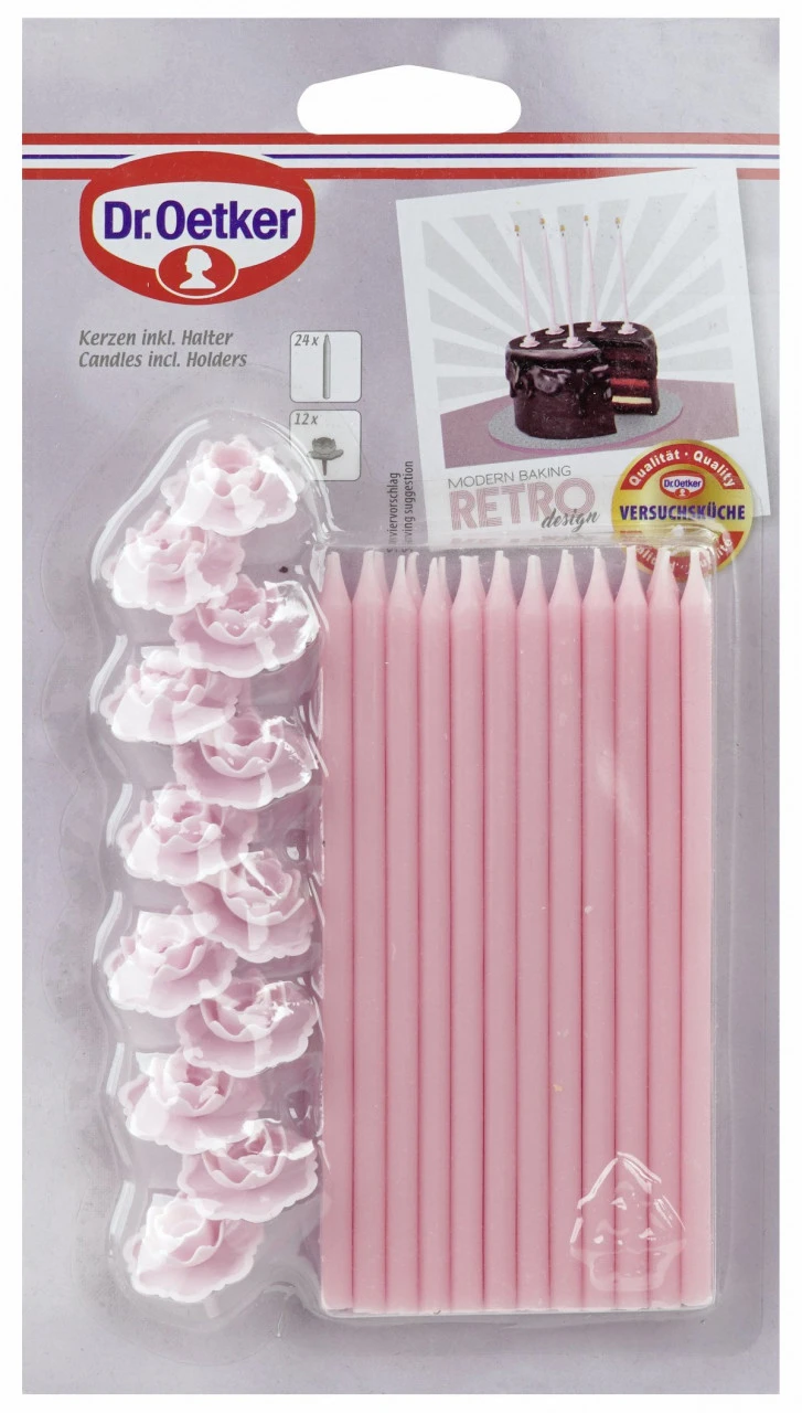 Mit den extra langen Kerzen wird die Festtagstorte zum absoluten Hingucker. Auch Cupcakes und moderne kleine, hohe Kuchen lassen sich damit im Handumdrehen verschönern. Der Kerzenhalter inkl. Wachsauffangschale verhindert, dass Wachs auf den Kuchen tropft.