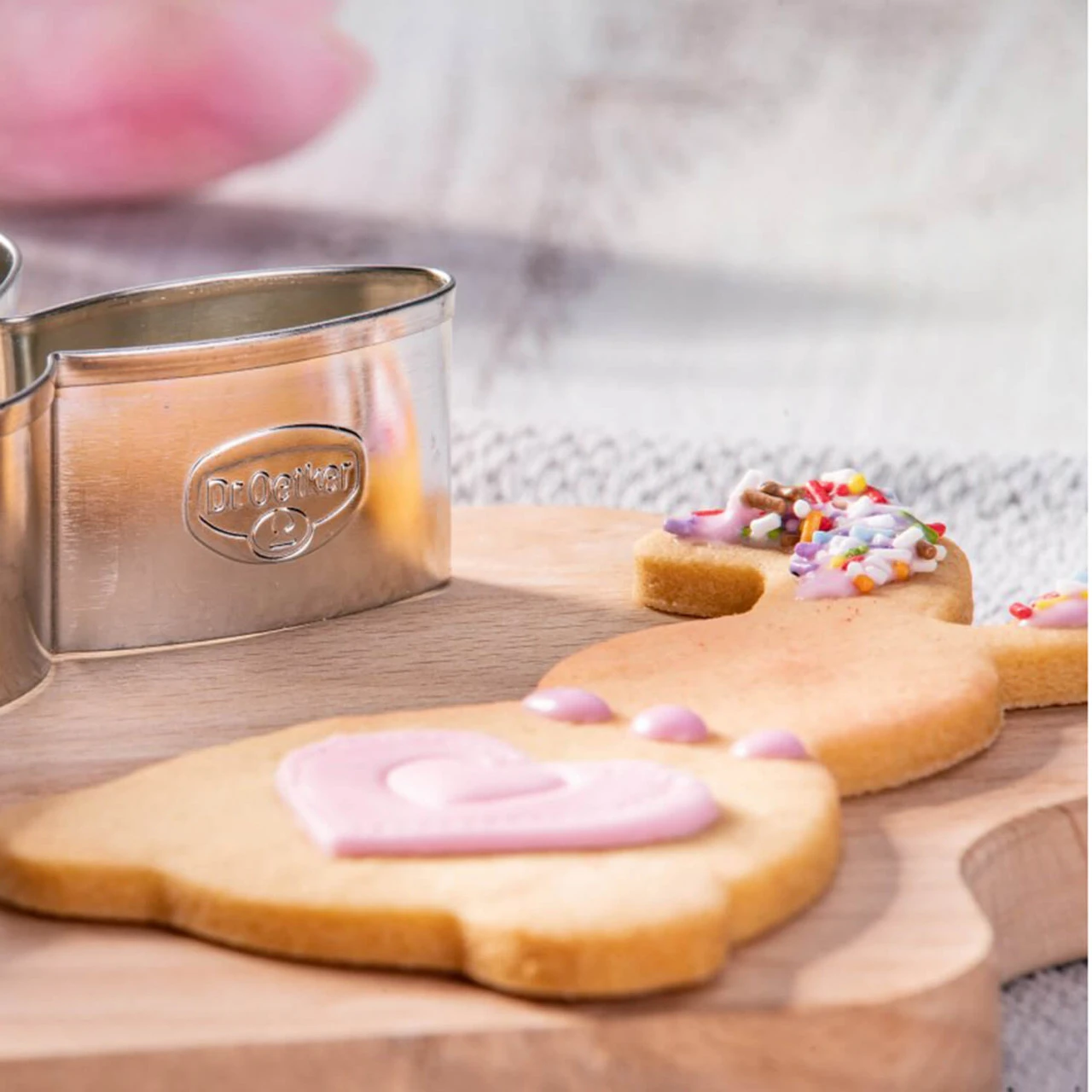 Mit dem Oster-Ausstecher „Hase stehend“ von Dr. Oetker lassen sich fantasievolle Motive kreieren. Die Kekse sind im Handumdrehen ausgestochen und können anschließend nach Herzenslust verziert werden. Der Ausstecher (12 x 7 x 2,5 cm) aus Weißblech kann nach Gebrauch einfach per Hand gereinigt werden.