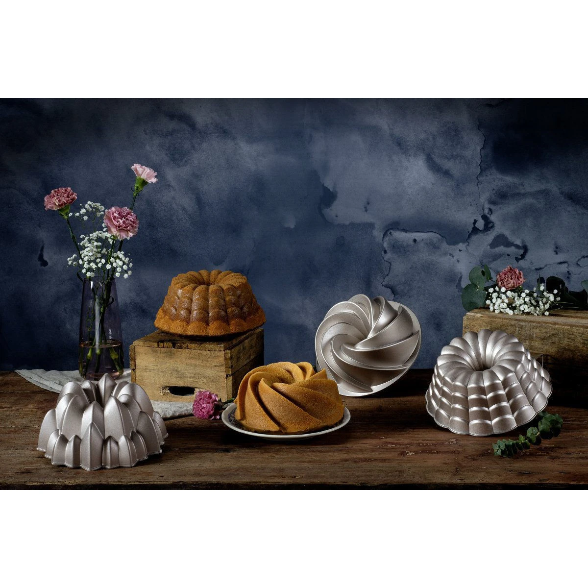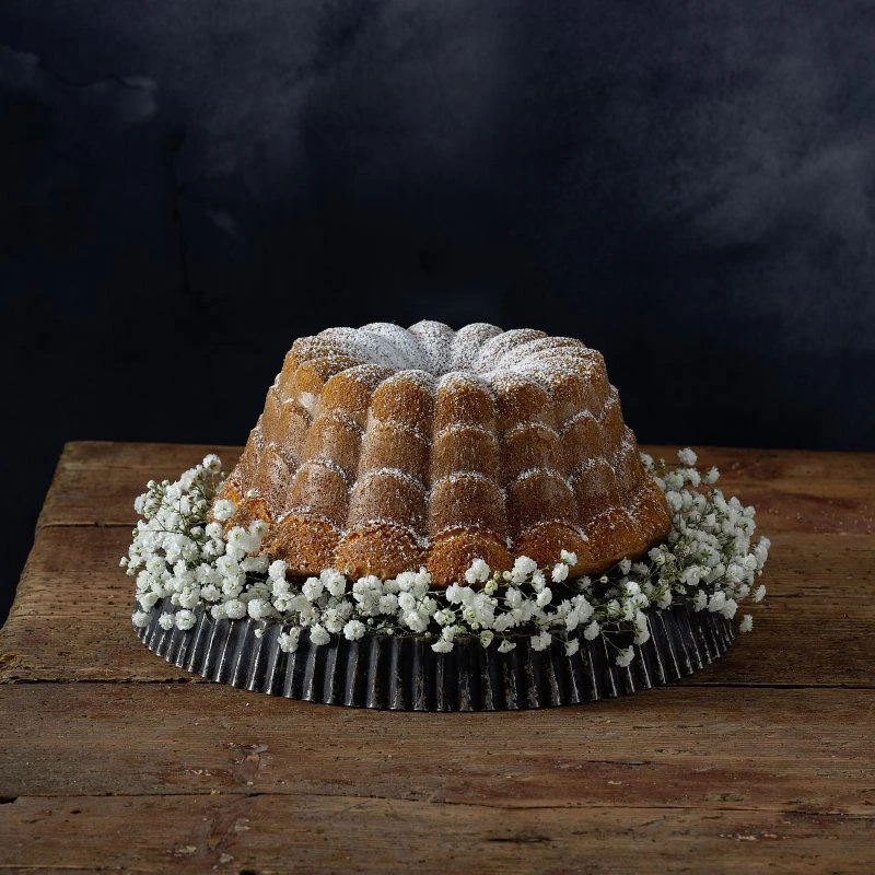 Die neue Gugelhupf-Form aus der Reihe Back-Kunst macht Backen zu einem kreativen, individuellen und extravaganten Erlebnis. Außergewöhnliche Formen sowie moderne Dekorations- und Verzierungstechniken machen die selbst gebackenen Kuchen zu einzigartigen Kreationen. Die terrassenförmig angeordneten Bögen des Gugelhupf „Floral“ erinnern an filigrane Blütenblätter oder feine Ziegeln.