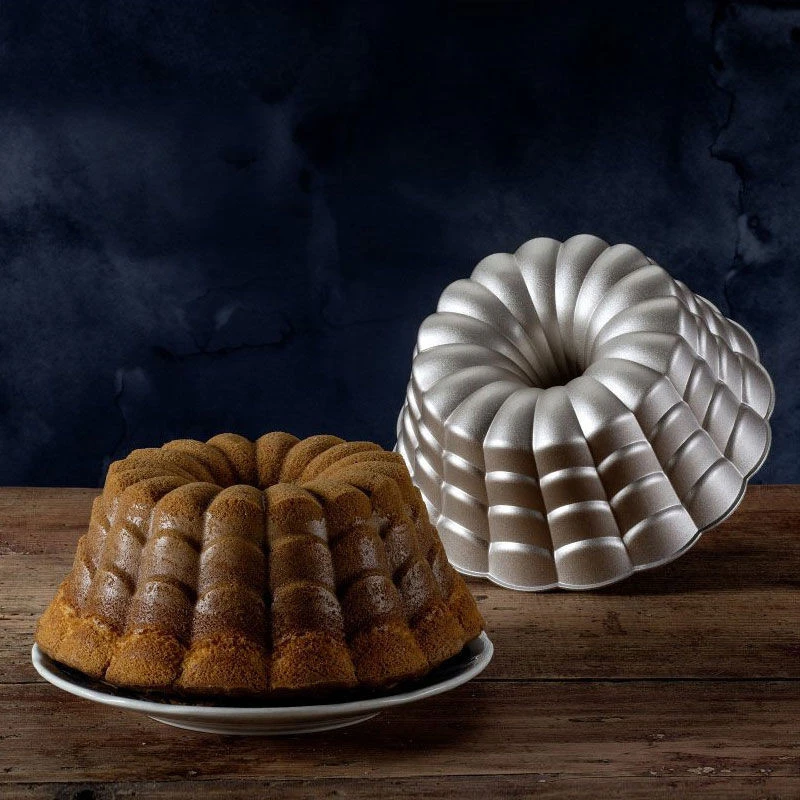 Die Backform ist aus Aluminiumguss gefertigt und deshalb besonders stabil, dickwandig und von schwerer Qualität. Aufgrund der sehr guten Wärmeleitung der Form wird der Kuchen gleichmäßig und zügig gegart und kann, dank der Special Antihaft-Beschichtung, mühelos gestürzt werden. Die Form lässt sich nach dem Gebrauch ganz einfach per Hand reinigen.