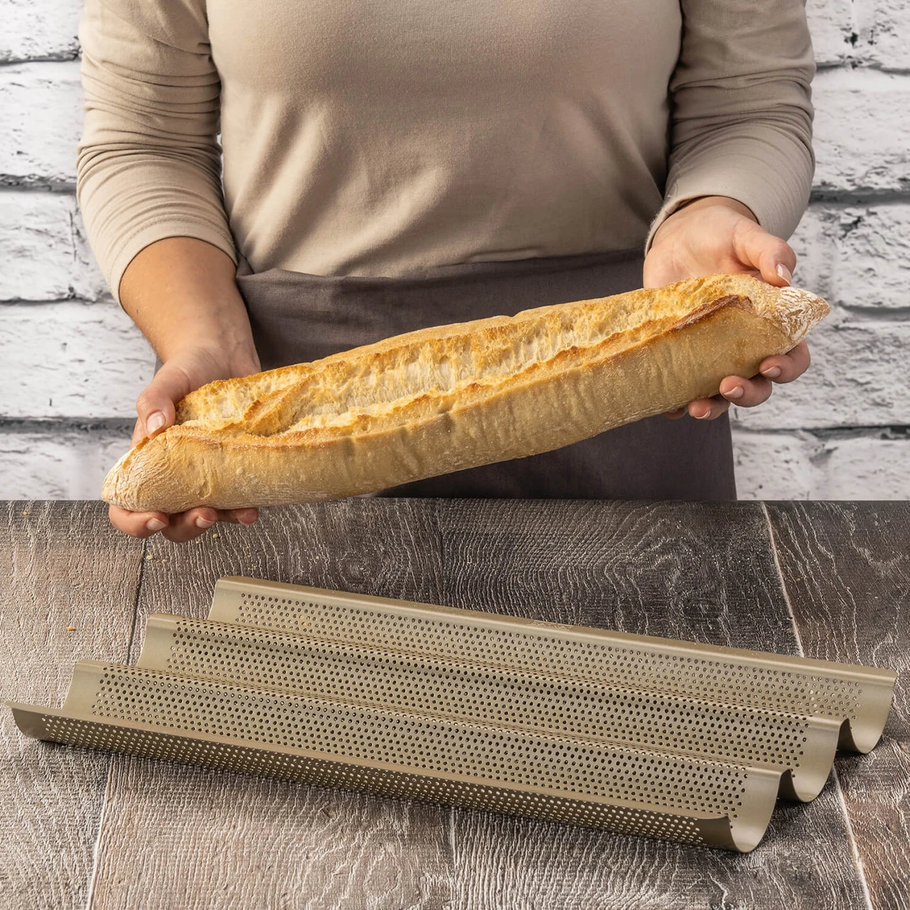 • 3er Baguetteblech zum Backen von selbstgemachten Baguettes
