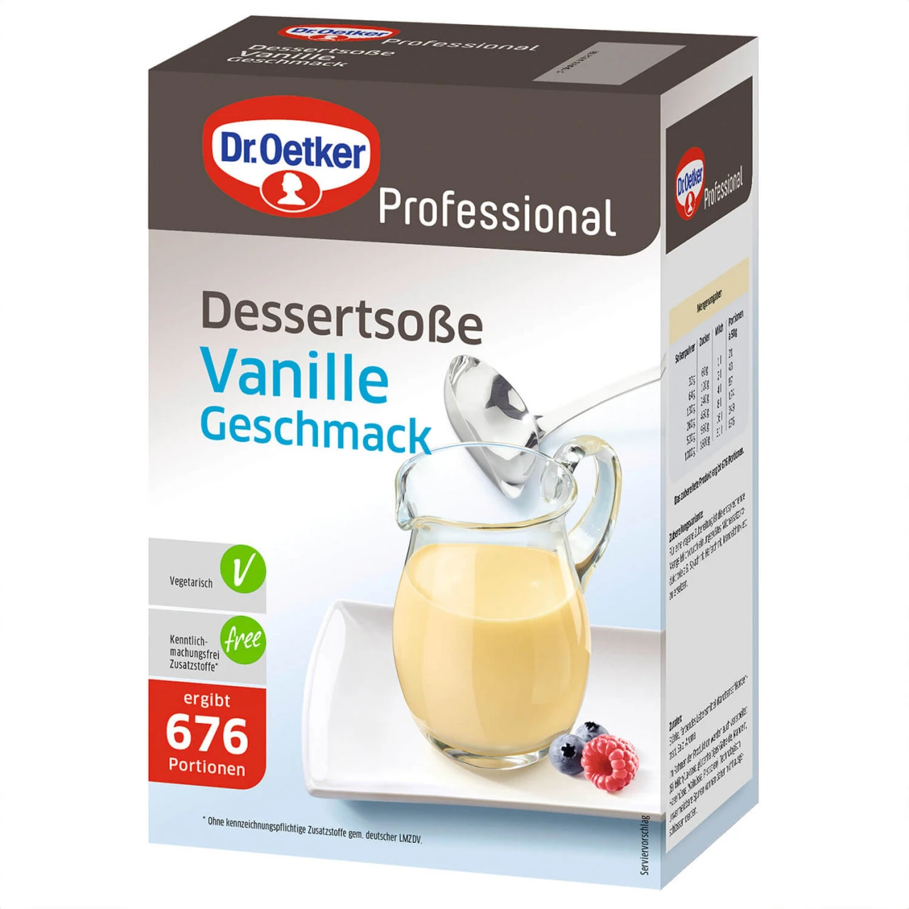 Dessertsoße Vanille-Geschmack zum Kochen – für viele Verfeinerungsideen. Für eine vegane Zubereitung ist die entsprechende Menge Milch durch ein ungesüßtes Milchersatzprodukt wie z.B. Sojadrink, Haferdrink, Mandeldrink etc. zu ersetzen.