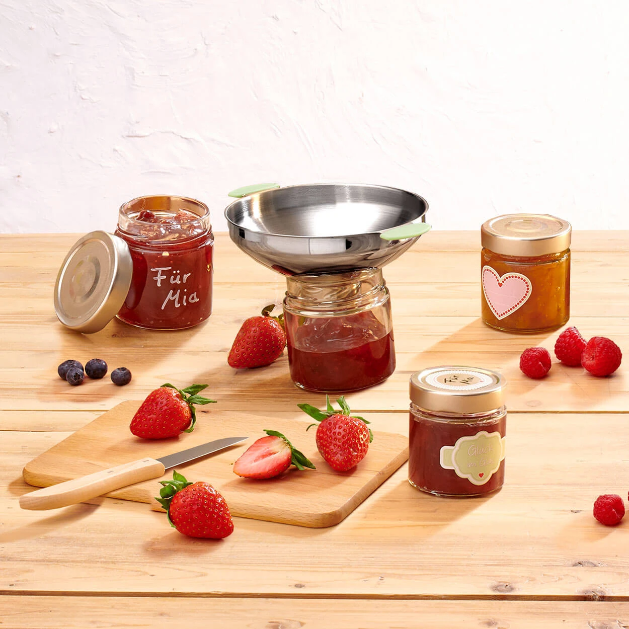 Geniale Einfüllhilfe! Die breite obere Öffnung (Ø 12 cm) und die praktischen Griffe des Einmach-Trichters sorgen dafür, dass das Einmachen kein Kleckerkram ist.