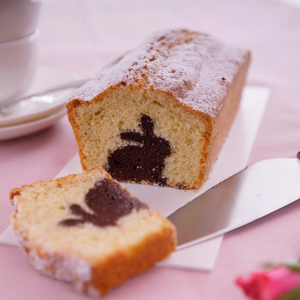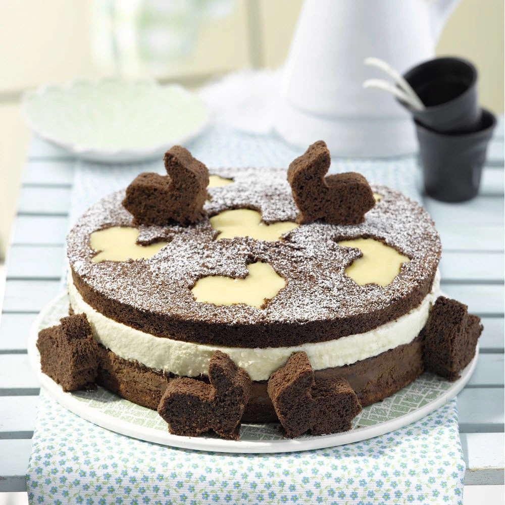 Die schöne goldene Kastenform überzeugt nicht nur durch sehr gute Antihaft-Eigenschaften, sondern garantiert durch ausgezeichnete Wärmeleitung auch ein optimales Backergebnis. Mit Hilfe des beiliegenden Häschen-Ausstechers können Sie ganz leicht einen österlichen Kastenkuchen backen. Einfach aus fertig gebackenem Teig kleine Häschen ausstechen, in die Form stellen und mit andersfarbigem Teig bedecken. Jetzt nur noch backen. Und genießen.