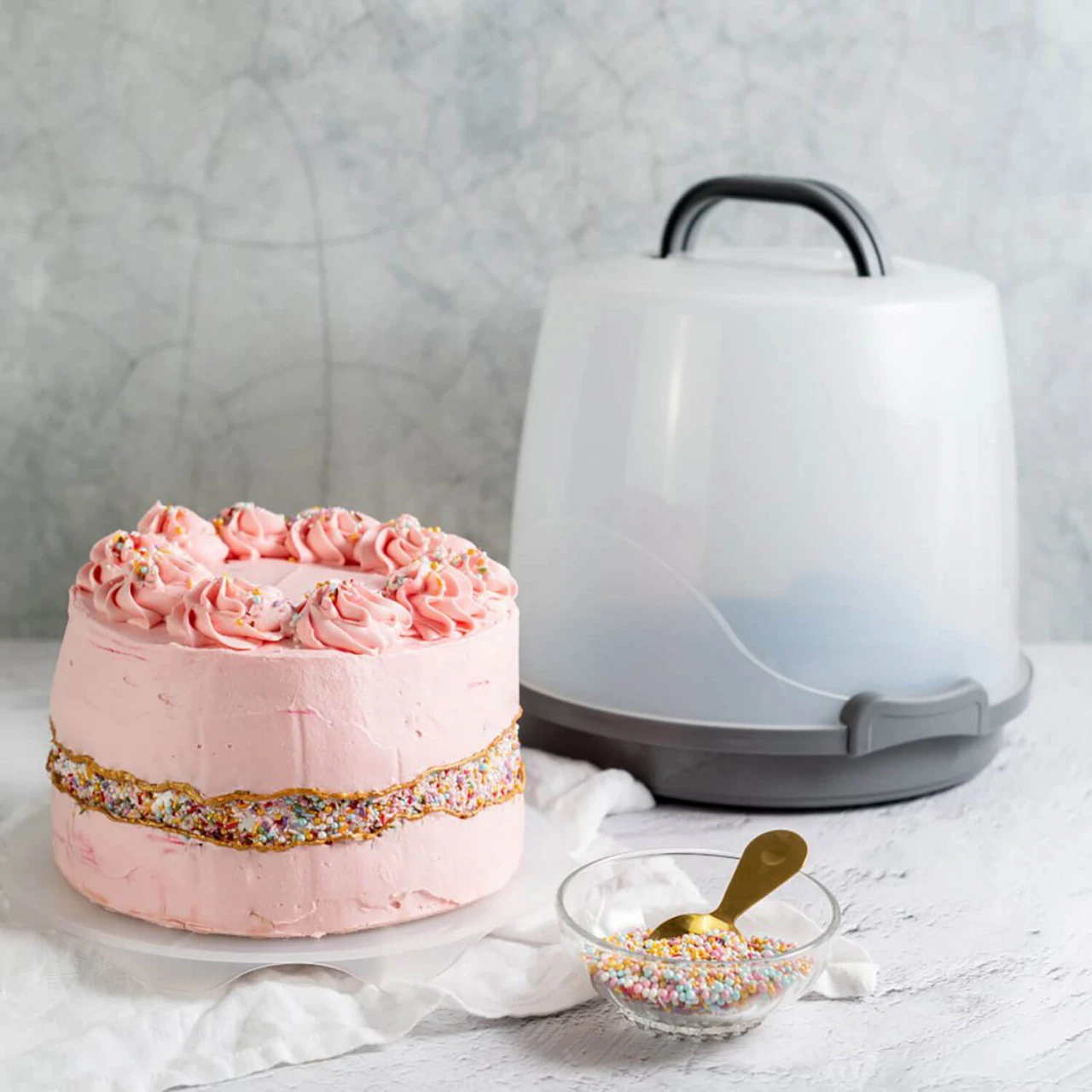 Hohe Torten sehen nicht nur toll aus, sondern schmecken auch gleich doppelt gut. Egal ob Buttercreme oder außergewöhnlicher Drip-Cake, die Backkreationen sollen begeistern und unbeschadet transportiert werden können. Möglich wird das mit der extra hohen (26 cm) und sicheren Transportbox. Dank der cleveren Konstruktion der Box, kann der Kuchen direkt auf dem herausnehmbaren Einlegeboden angeschnitten und serviert werden. Durch den transparenten Deckel lässt sich der Inhalt dauerhaft überprüfen.