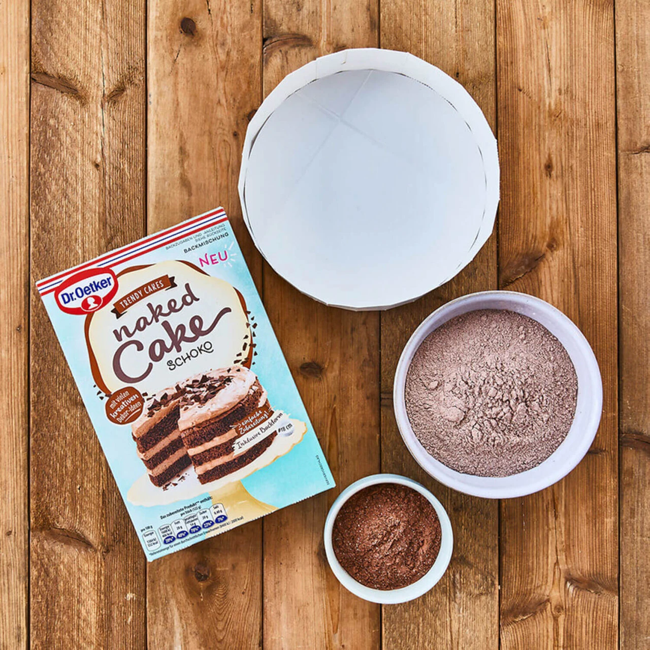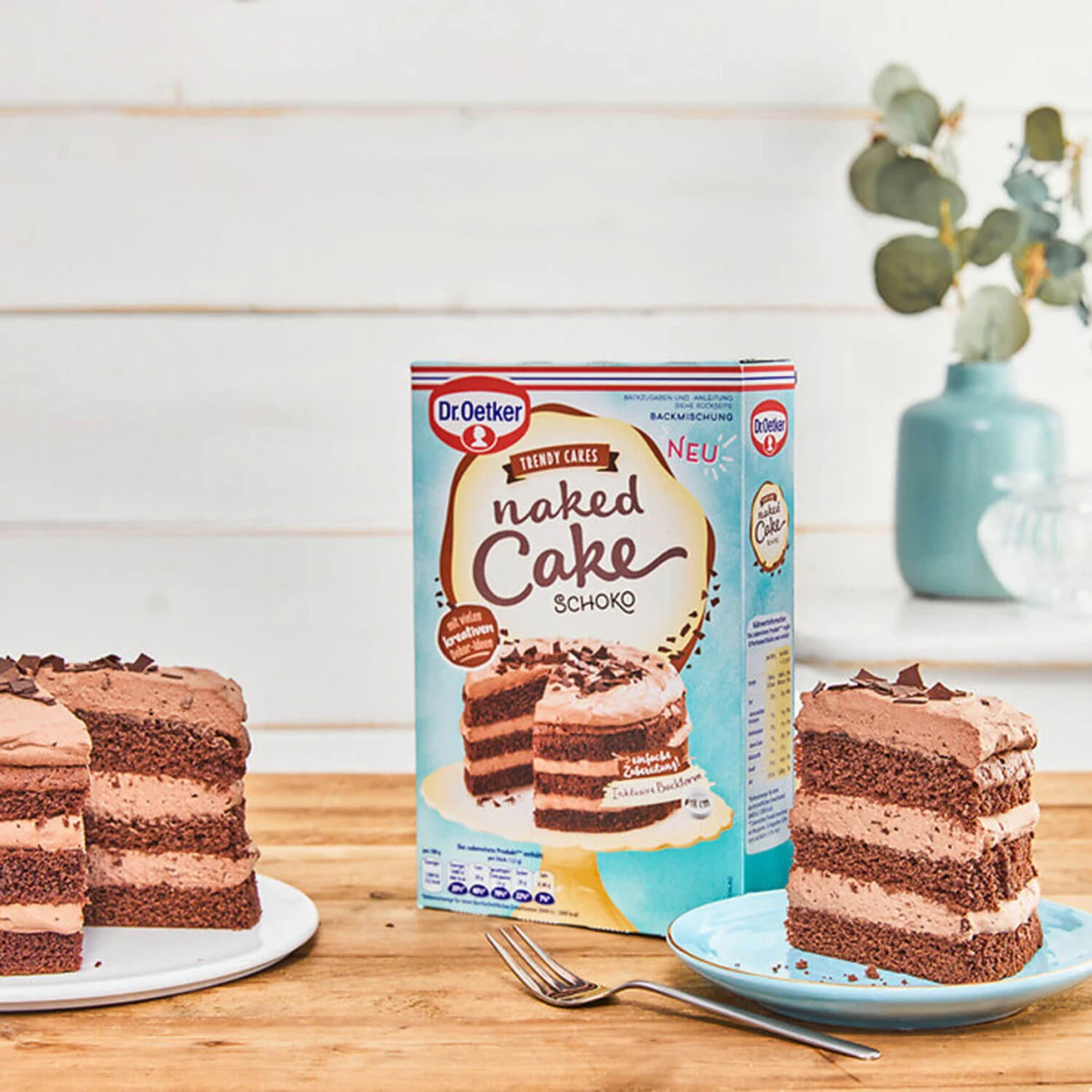 Die Backmischung Dr.Oetker Naked Cake ist eine kleine Sahnetorte und schmeckt in der Sorte Schoko besonders schokoladig und cremig. Mit der angesagten Schichtoptik, sieht die Schokoladen-Sahnetorte auf jeder Kaffeetafel zum Anbeißen aus. Denn das Besondere der Naked Cakes ist, dass Sie von außen die einzelnen Schichten von lockerem Rührteig und cremigem Belag bereits erkennen lassen.Der leckere Naked Cake Schoko ist mit der Backmischung wunderbar einfach zubereitet. Für den Rührteig werden nur drei zusätzliche Zutaten – Margarine, Eier & Milch – benötigt. Mit der praktischen Backform (Ø 18 cm) ist der Boden in nur 35 Minuten gebacken. Nach dem Erkalten des Bodens, wird der Kuchen waagerecht durchgeschnitten und die zubereitet Schoko-Sahne Schicht für Schicht auf den Böden verstrichen. Danach beginnt der Dekorierspaß mit Früchten, Süßigkeiten oder Dekorprodukten.Fertig ist der individuelle Naked Cake für jede Gelegenheit!