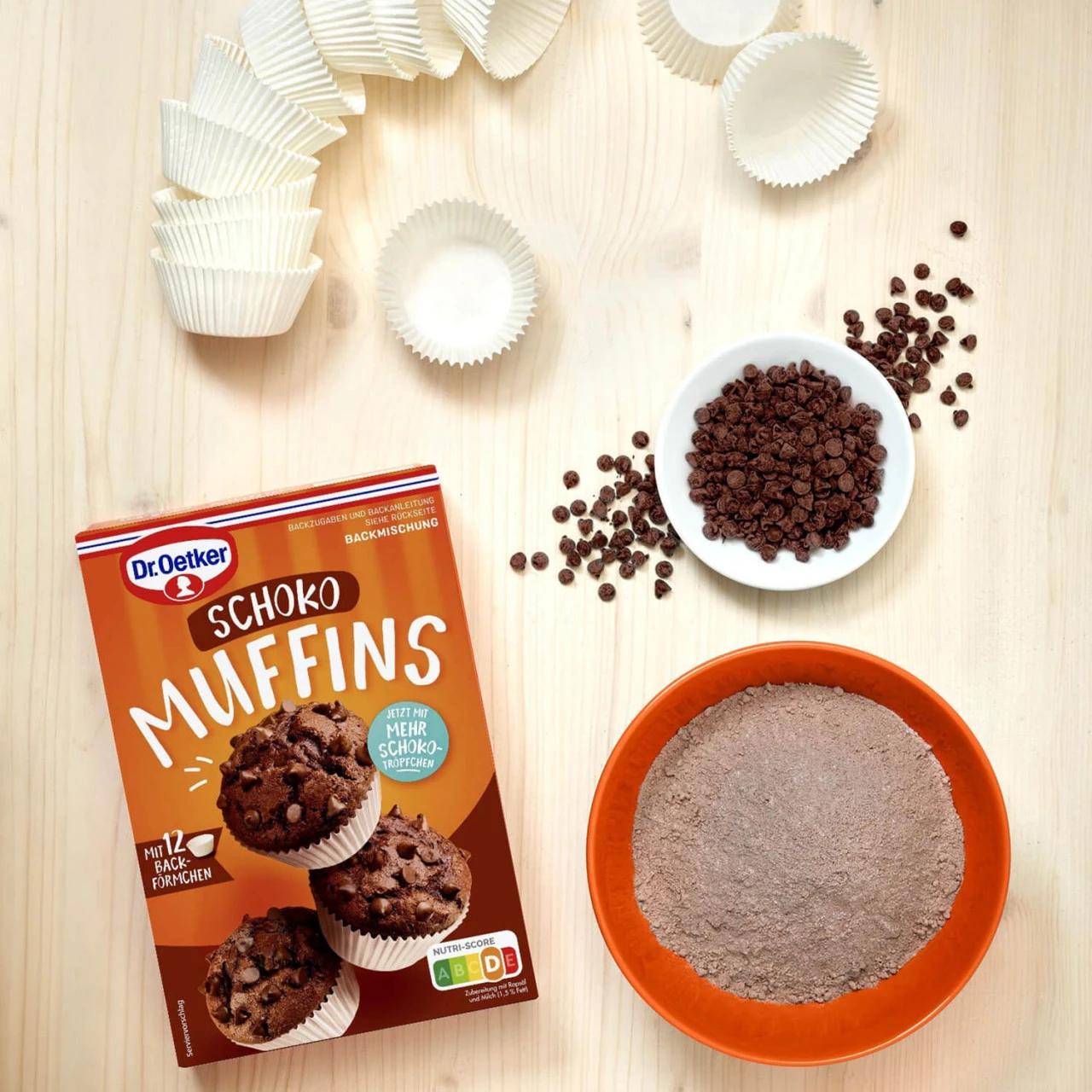Muffins für alle, die Schokolade lieben: Herrlich saftig und schokoladig mit extra vielen Schokoladen-Tropfen! Als Kleine Back-Idee von Dr. Oetker sind die Muffins einfach und schnell herzustellen.Die Backmischung enthält neben der Teigmischung und den Schokoladen-Tropfen bereits die Backförmchen für 12 leckere Muffins.Kleine Back-Ideen – kleine Gebäcke, großer Genuss!