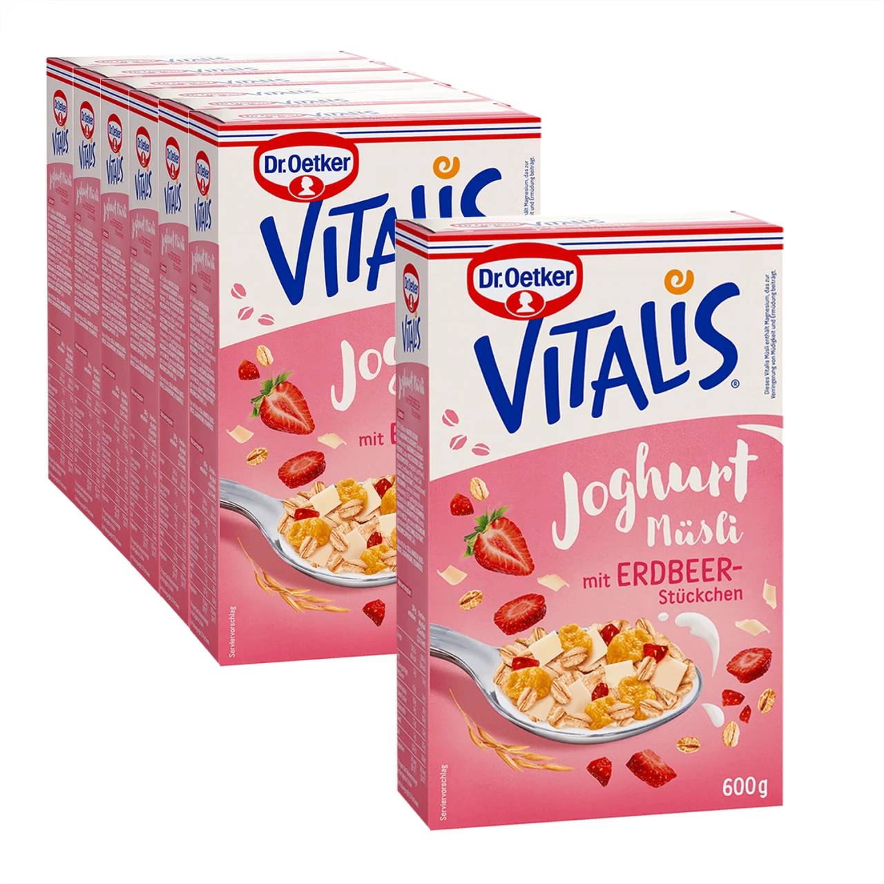 Verwöhnen Sie sich mit Vitalis Joghurtmüsli. Einfach Quark oder frische Milch dazu. Ganz nach Wunsch noch mit frischen Früchten garnieren. So schmeckt es einfach köstlich.