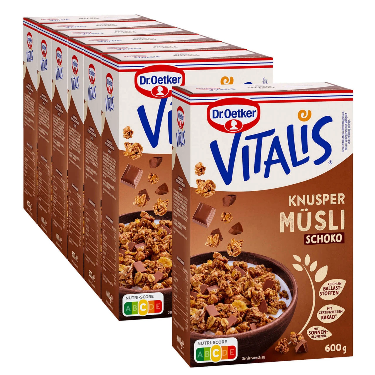 Dr. Oetker Vitalis Knuspermüsli Schoko liegt im Verbrauchertrend und sorgt mit ausgesuchten Rohstoffen und raffinierter Rezeptur für einen genussvollen Start in den Tag. Du erhältst dieses Produkt in den Packungsgrößen 600 g und 1,5 kg.