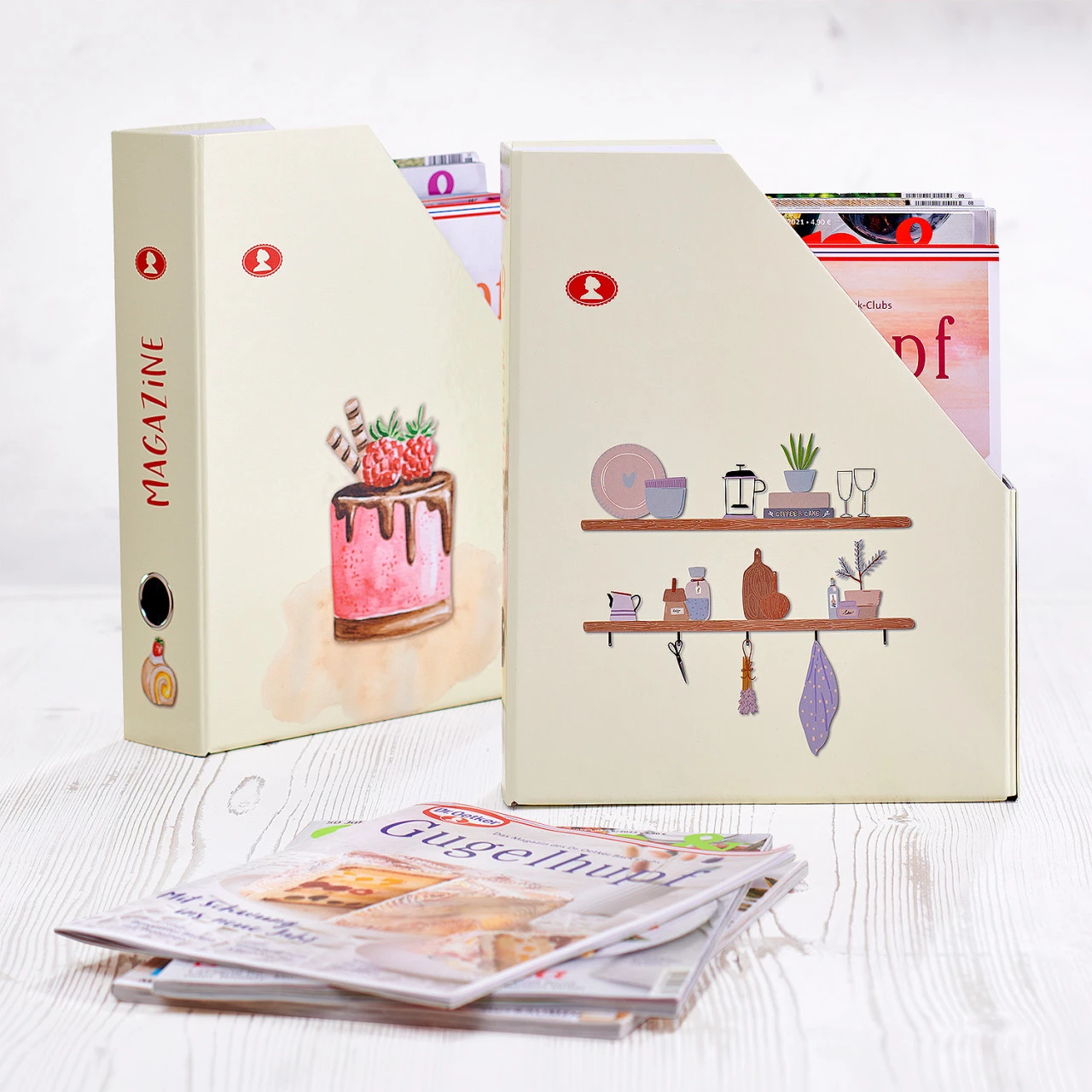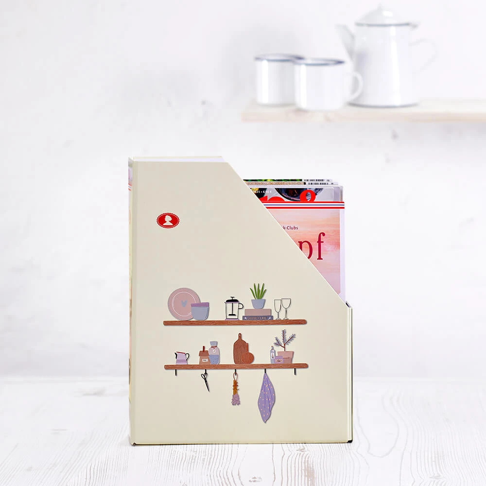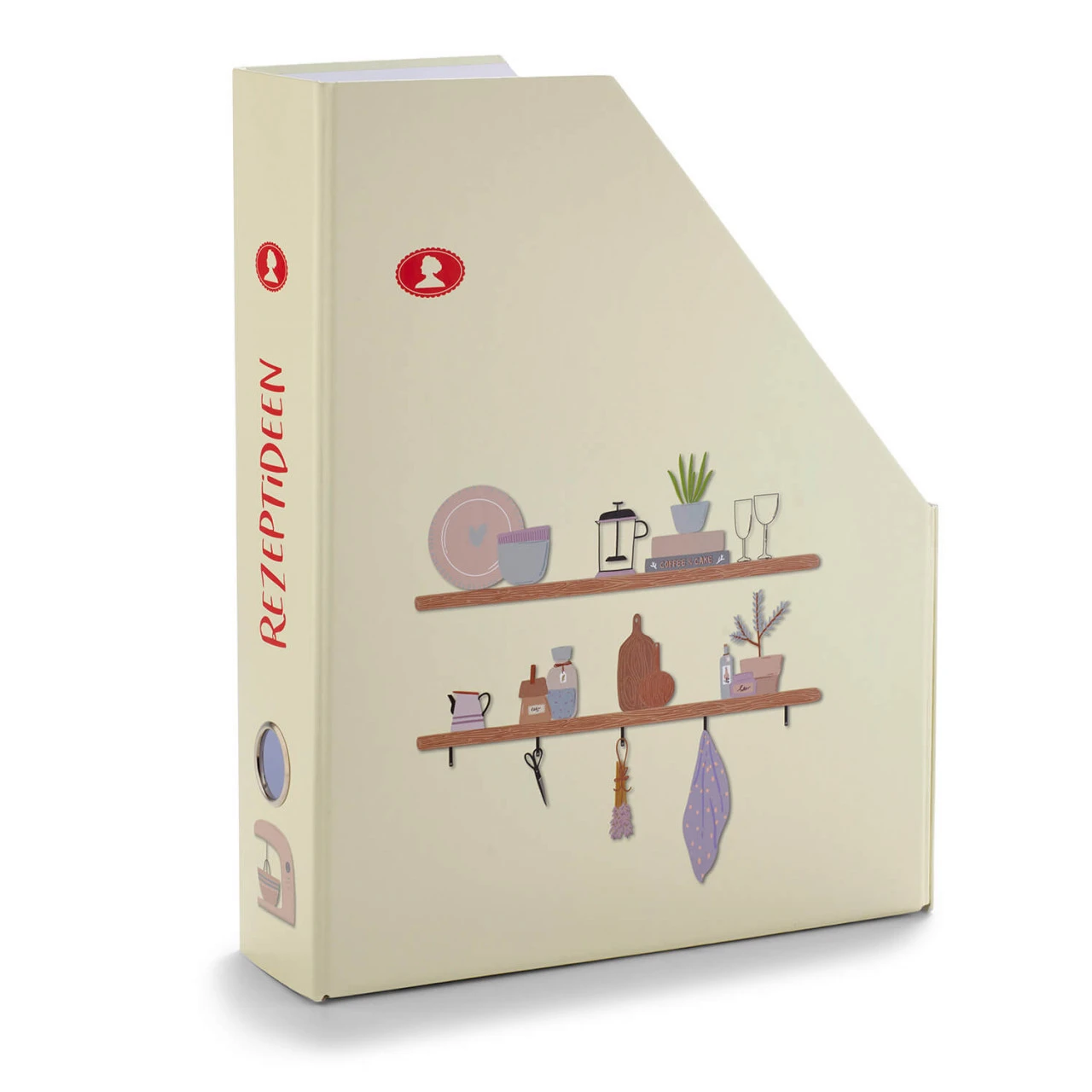 Mit dem neuen Zeitschriftensammler „Rezeptideen“ von Dr. Oetker, finden lose Rezepte, Zettel und Hefte einen Platz, um Ordnung ins Chaos zu bringen. Die Sammler sind zusätzlich, durch die Küchenmotive, ein schöner Hingucker in der Küche. Durch das Metallgriffloch, lässt sich der Stehsammler ganz einfach aus dem Regal nehmen und die Aufschrift „Rezeptideen“ zeigt direkt, was sich in dem Ordner versteckt. Nie war es einfacher und schneller an seine Lieblingsrezepte zu kommen. Der Sammler ist passend für Inhalte mit der Größe DIN A4. Er wird flachliegend geliefert und ist durch den Steckboden ganz einfach aufzustellen.